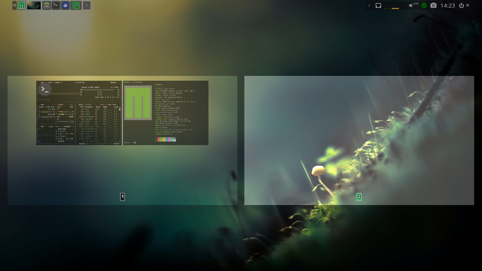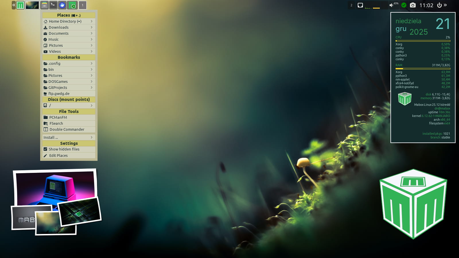 At the top is a panel. This isn’t just any panel, it’s Tint2, offering interesting options, like actions triggered by right-clicking or the mouse wheel. Check out which elements of the panel offer these options 🙂