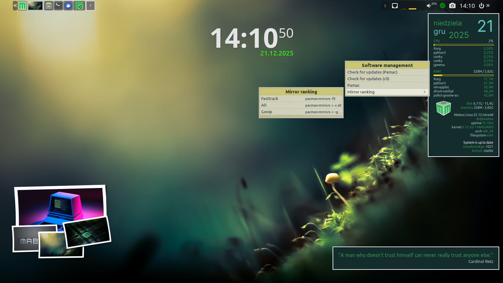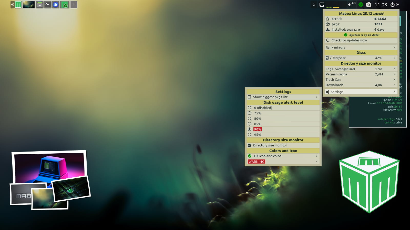 For example, right-clicking the Mabox icon gives you quick access to configuring certain aspects of the panel’s behavior. You’re sure to find something interesting under other icons as well.